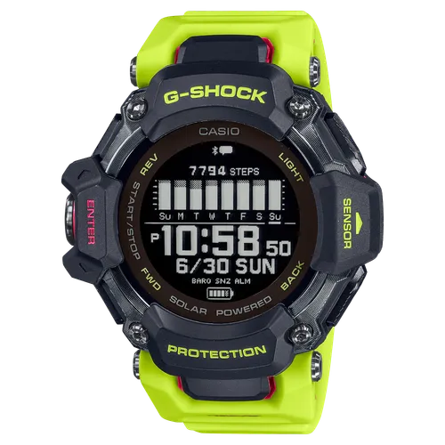 Die G-SHOCK GBD-H2000-1A9 definiert Performance neu. Ausgestattet mit sechs Sensoren, GPS und Polar™-Algorithmen bietet diese Multisport-Uhr präzise Daten für Training und Erholung – verpackt in einem robusten, umweltfreundlichen Gehäuse aus biobasiertem Resin.